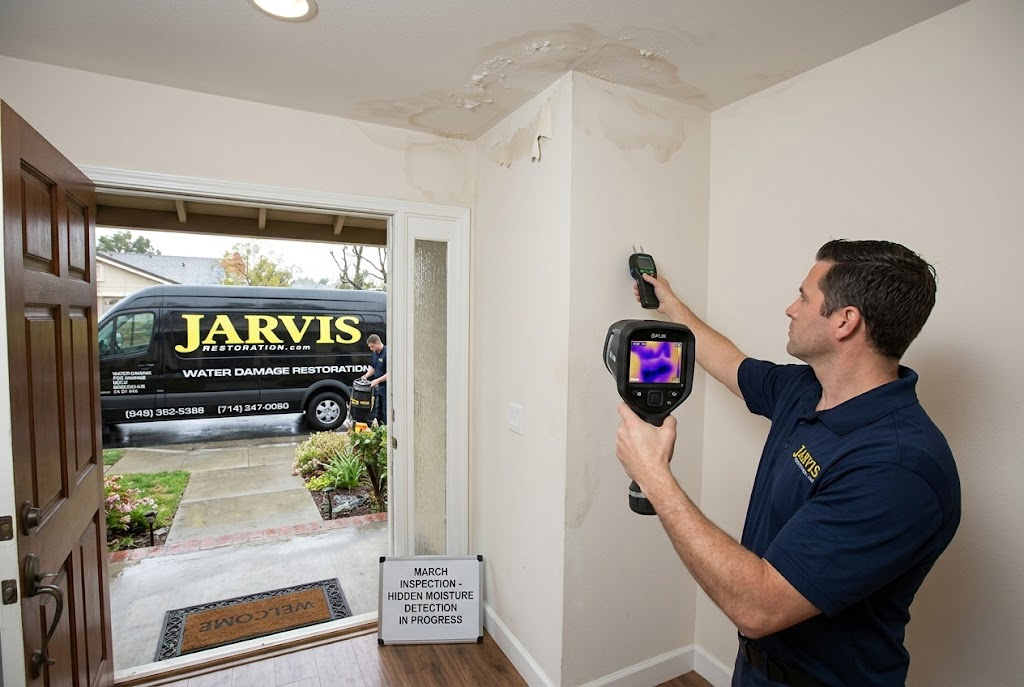 March often brings a noticeable shift in weather across Orange County. Seasonal rainstorms arrive, temperatures begin to rise, and homes that seemed fine during the winter months can suddenly show signs of moisture problems. For many homeowners, this is the time when hidden water damage begins to appear.
